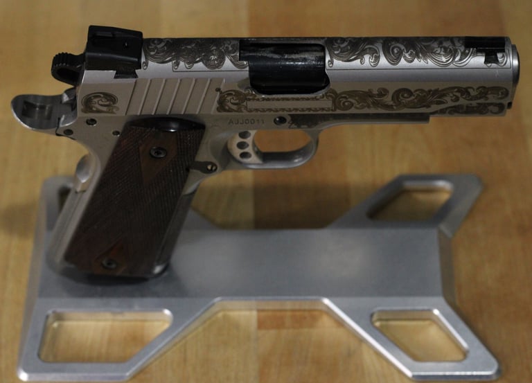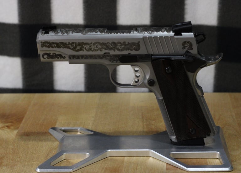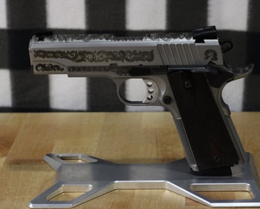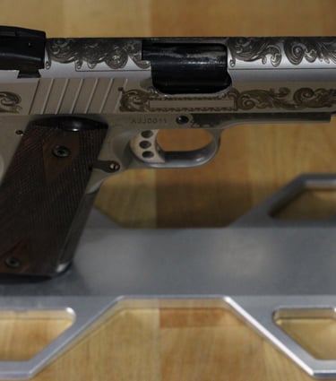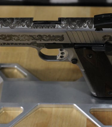Our pistol engraving services use the latest technology to accurately and precisely engrave a wide variety of materials, including polymer, wood, and more.