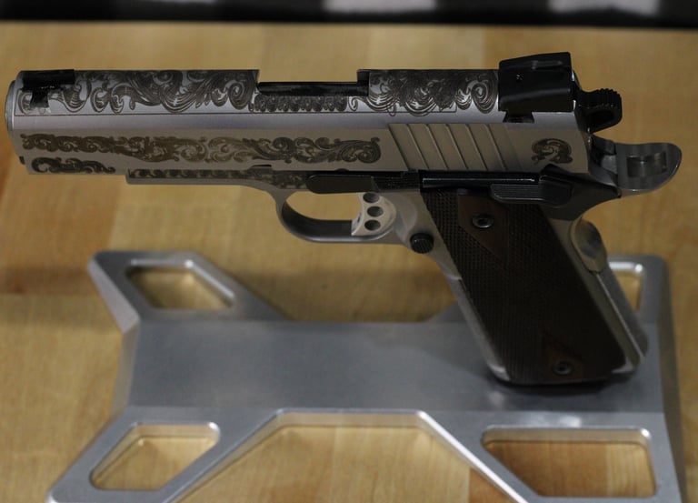 In addition to our handgun engravings, we can also engrave and mark short barrel rifles for gun manufacturers.